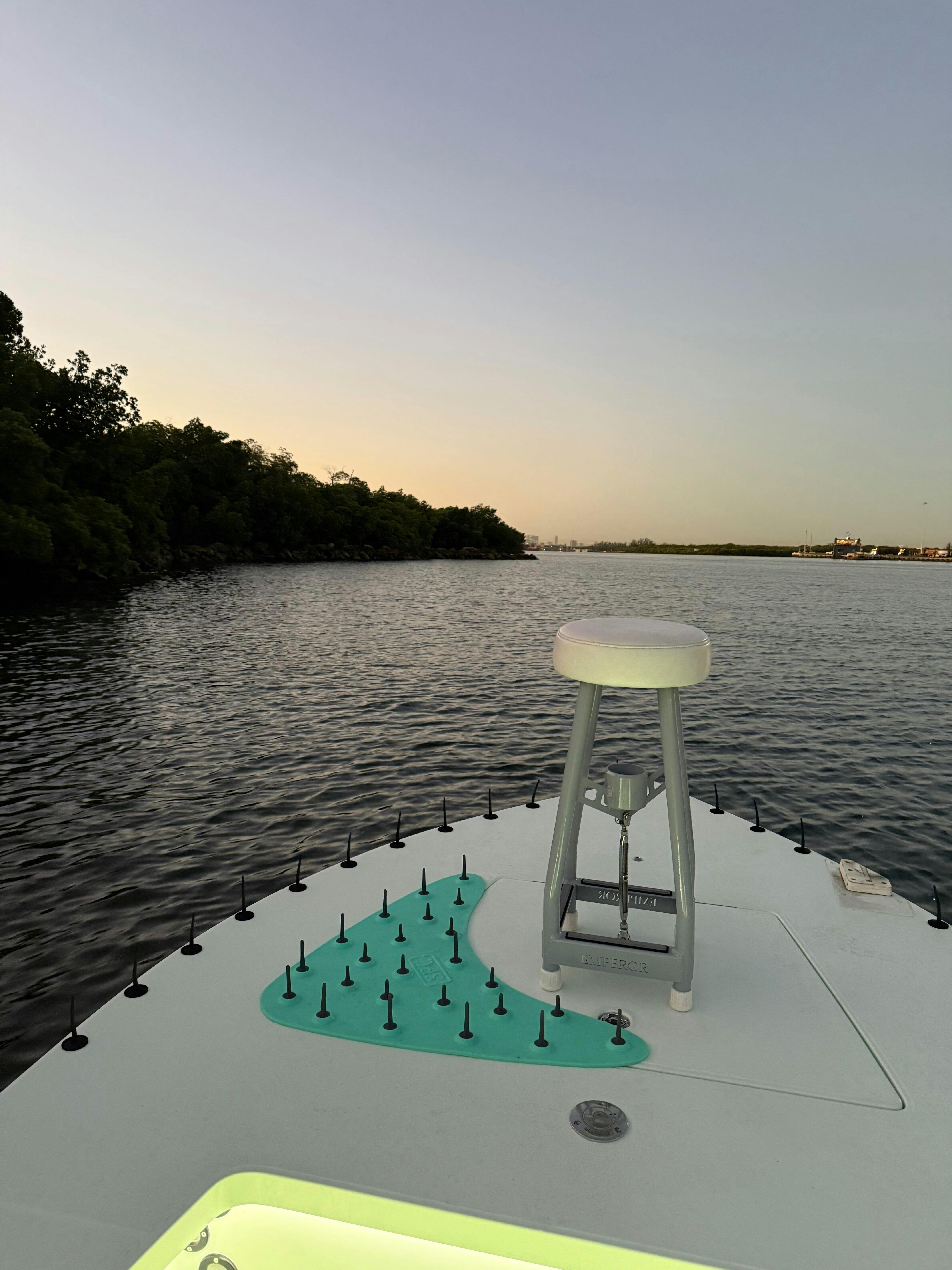 Mat works great on my skiff. I use my Yeti cooler to stand on while on the front deck with my mat off to the stripping side. Helps keep the line in the boat especially on windier days. The mat and pegs are much more flexible than other mats I’ve use and don’t hurt your feet if you step on it. My only complaint is that installing the pegs in the mat is not all that intuitive, you feel like you are going to rip the mat or the pegs pulling the pegs through but you don’t. Maybe an on-line video showing the correct method? Great product!
